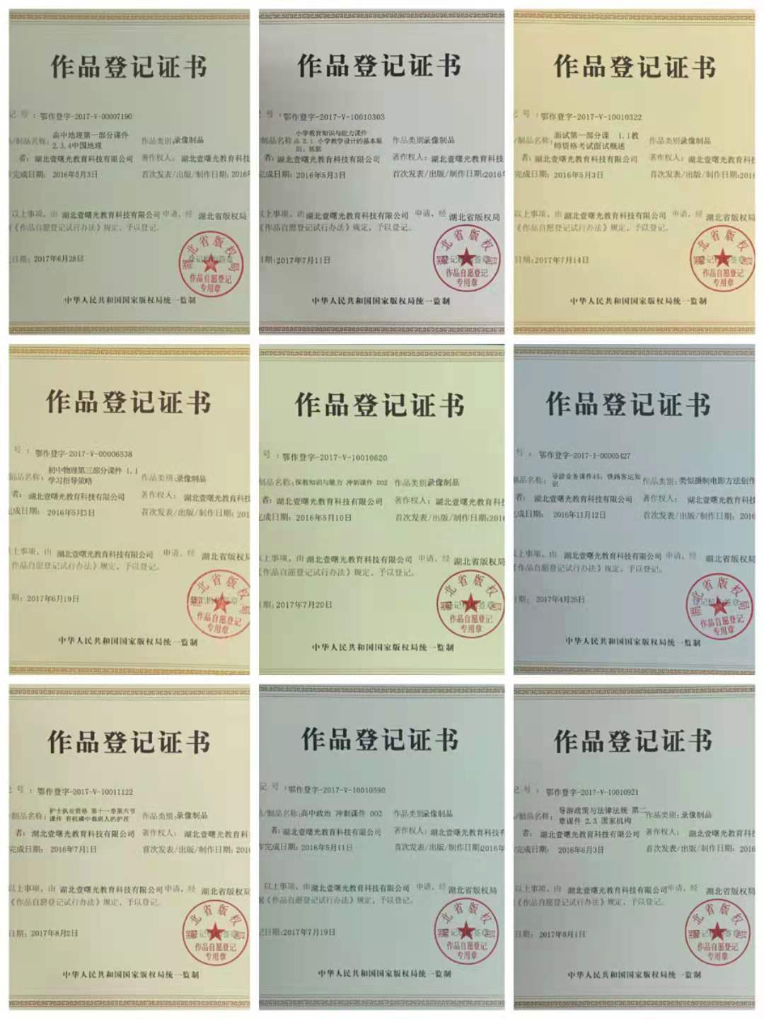 在專家座談會后,我公司組織現有在線課程版權的申請,安排人員組成專項小組專門負責該項工作地開展。11個月以來,該專項小組把我公司從成立到現在的所有在線課程按照類別整理,在此基礎上寫申請書。截止2017年11月25日,曙光在線教育在線課程版權申報已經突破3100項,獲批2600多項。這是我公司在知識產權方面取得的又一重大突破,對我公司來說具有里程碑的意義。